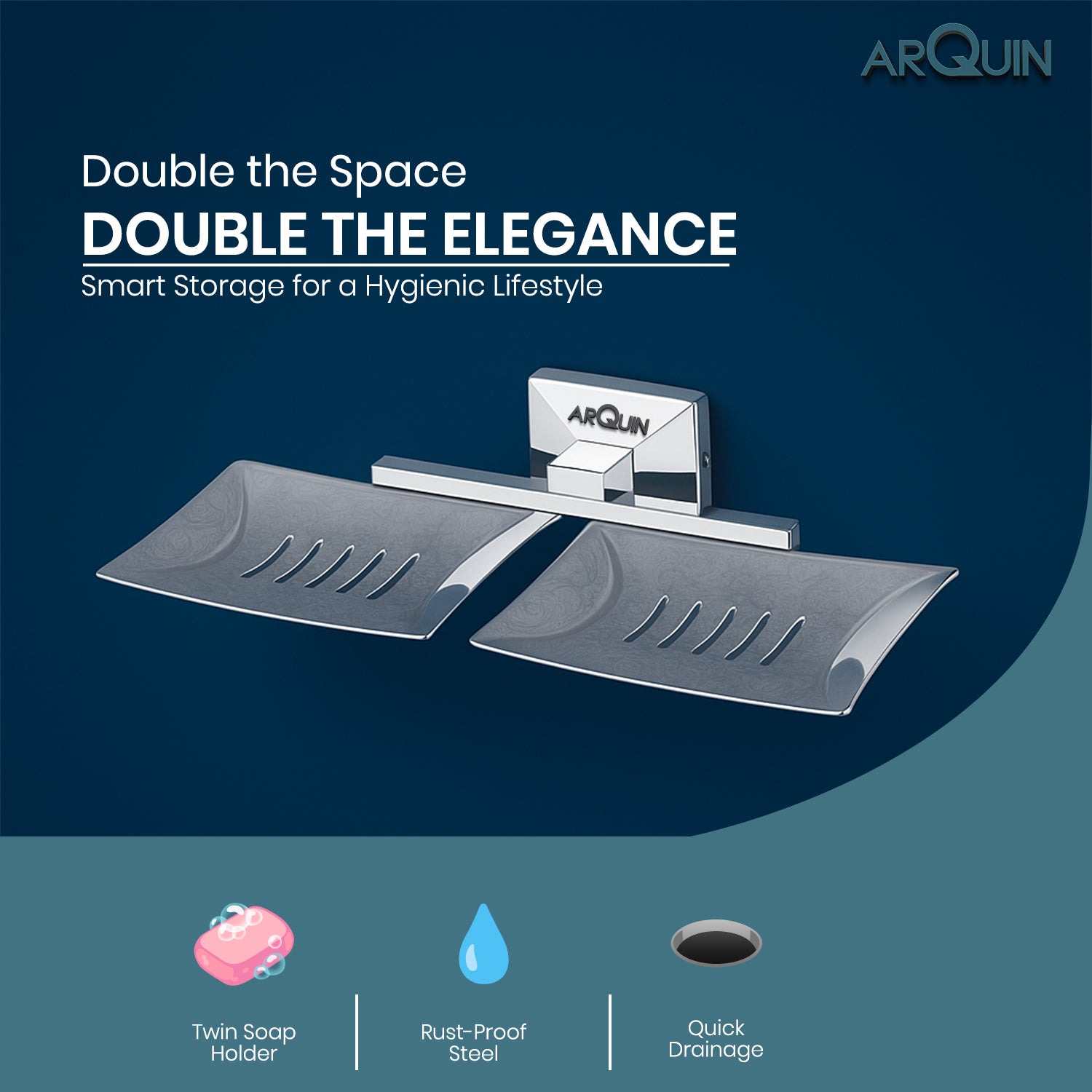 - Top-Notch Quality:- Twin Soap Dish Experience unmatched craftsmanship with Arquin's Soap Dish. Made from premium stainless steel with a gleaming chrome finish, it combines durability with elegant design. Engineered for long-term performance, this soap dish isn’t just a utility - it's a statement of sophistication. Upgrade your space with Arquin - where quality meets timeless style.