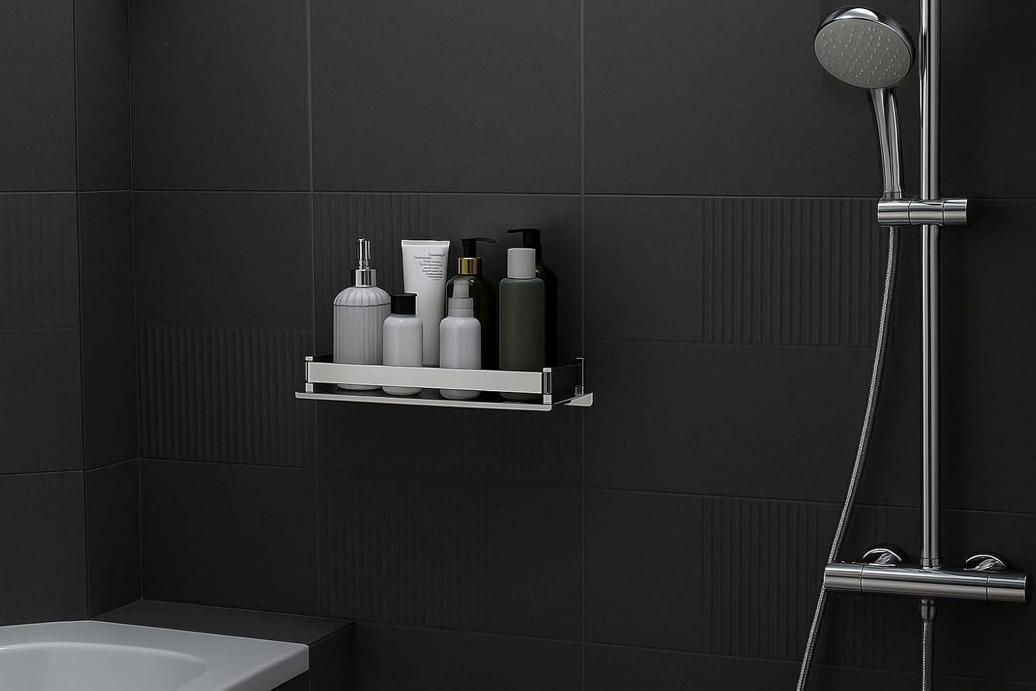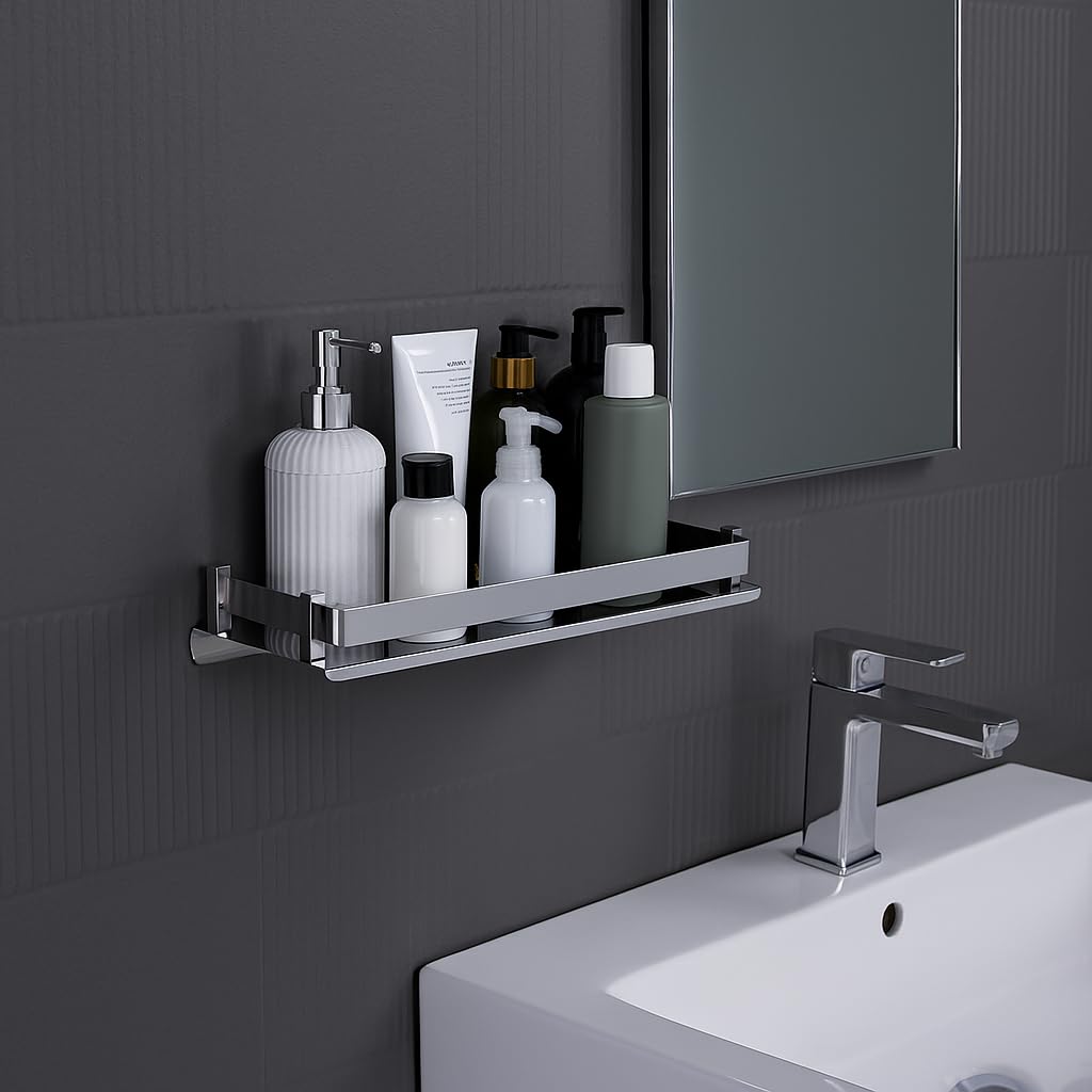 ✅ Sleek Mirror Finish – Enhances the look of your modern bathroom interior, Heavy Duty Shower Rack – Holds weight without bending or sagging, Easy Installation – Comes with screws and wall plugs for secure mounting