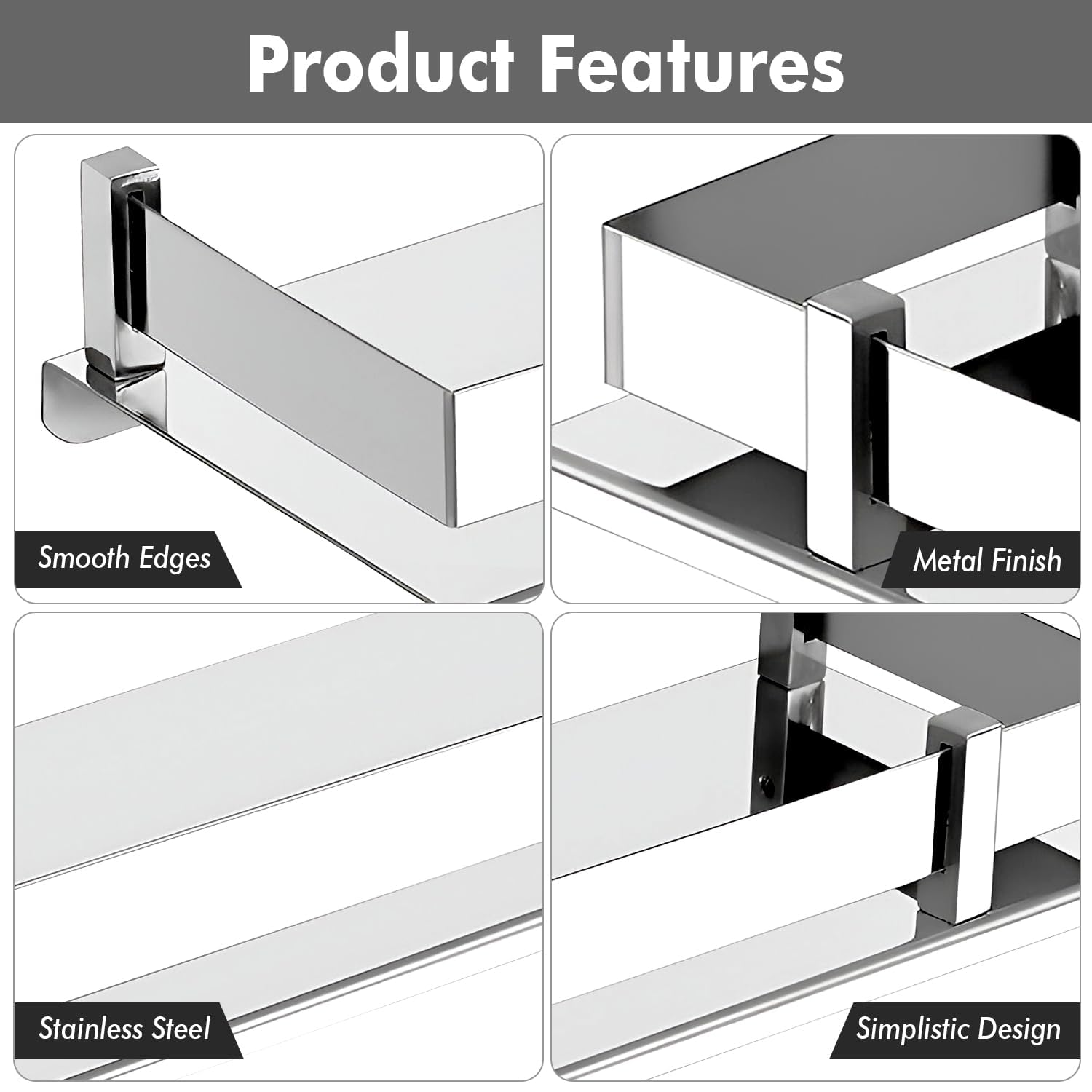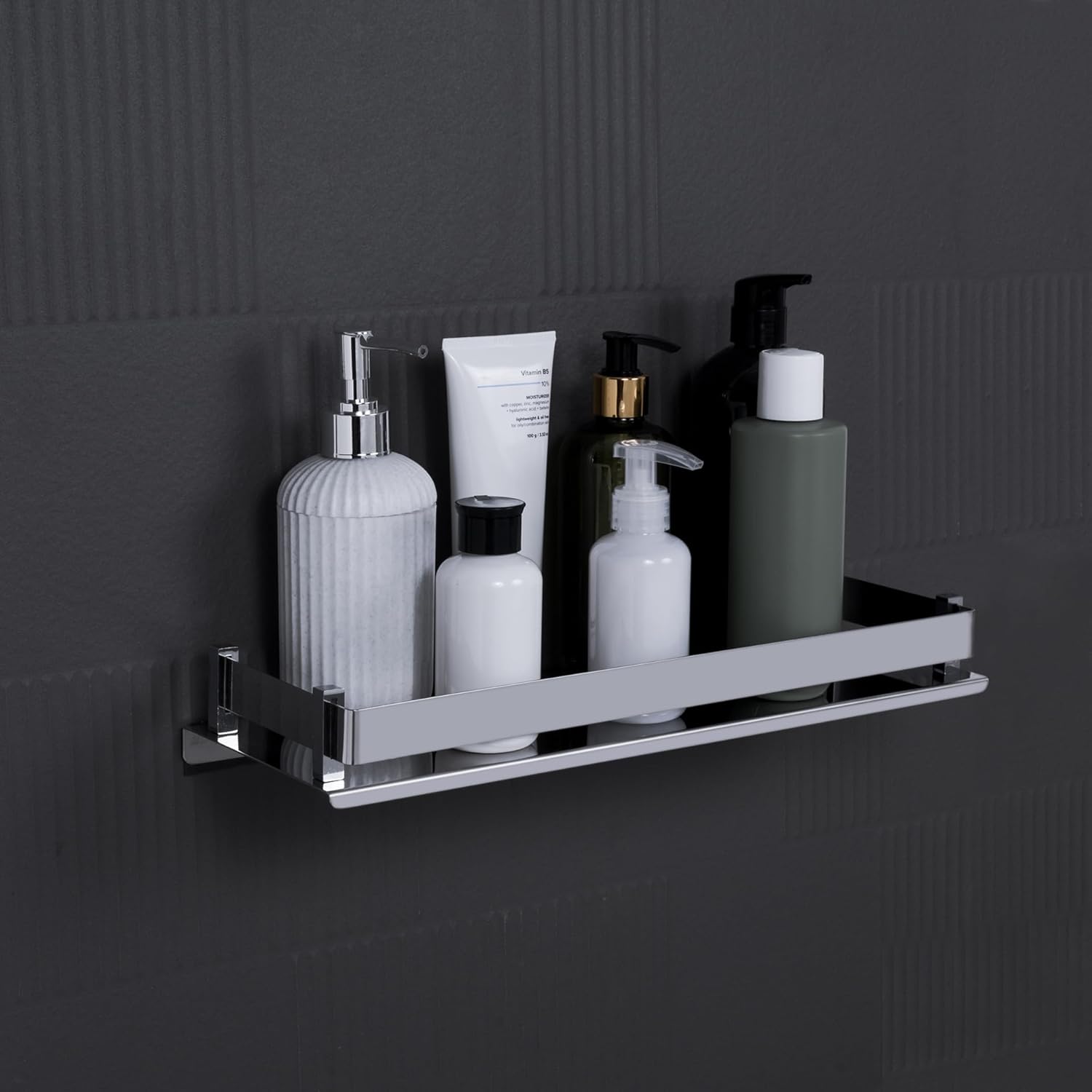 ✅ Sleek Mirror Finish Shelf – Enhances the look of your modern bathroom interior, Heavy Duty Shower Rack – Holds weight without bending or sagging, Easy Installation – Comes with screws and wall plugs for secure mounting