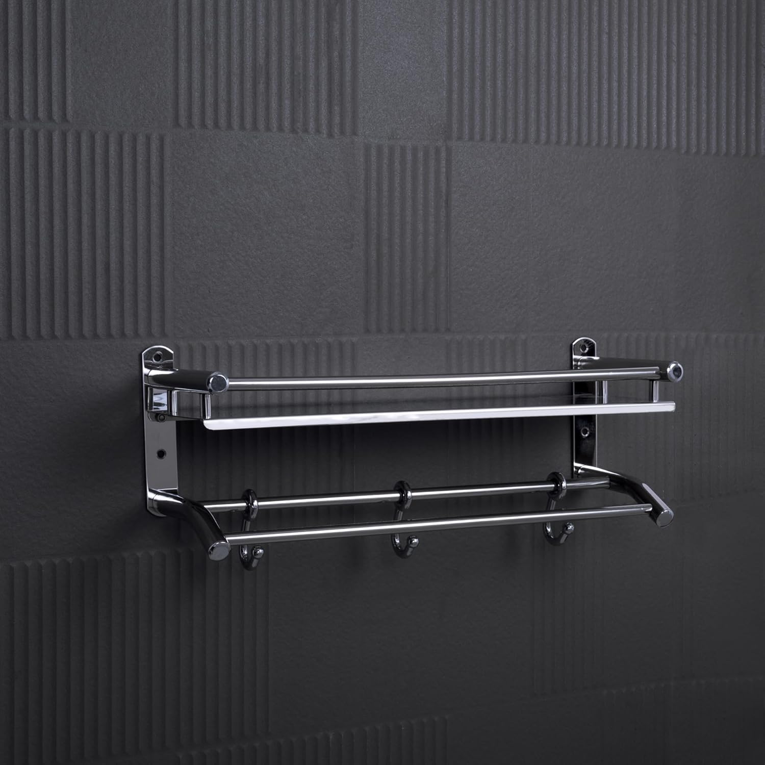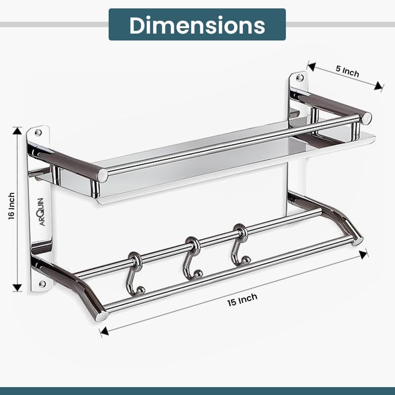 ARQUIN bathroom shelf towel rack holder is crafted from high-quality stainless steel and finished with a sleek chrome coating, offering excellent durability with anti-scratch, anti-rust, and corrosion-resistant properties. Built to withstand humid conditions, it ensures long-lasting performance and reliability. The versatile design provides ample space for organizing toiletries, shampoo, perfume bottles, accessories, mobile phones, or other essentials—keeping your bathroom neat, clean, and clutter-free. Designed to maximize space in small bathrooms, the triangular rack fits perfectly into any , making it a space-saving bathroom organizer.