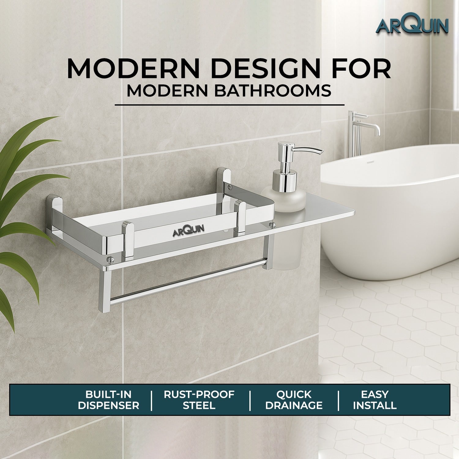 ✅ Heavy Grade Stainless Steel – ARQUIN Bathroom Shelf Rust-resistant, durable, and built to last bathroom shelf is made from durable stainless steel material with Chrome finish which has anti-scratch, anti-rust and corrosion-proof properties.