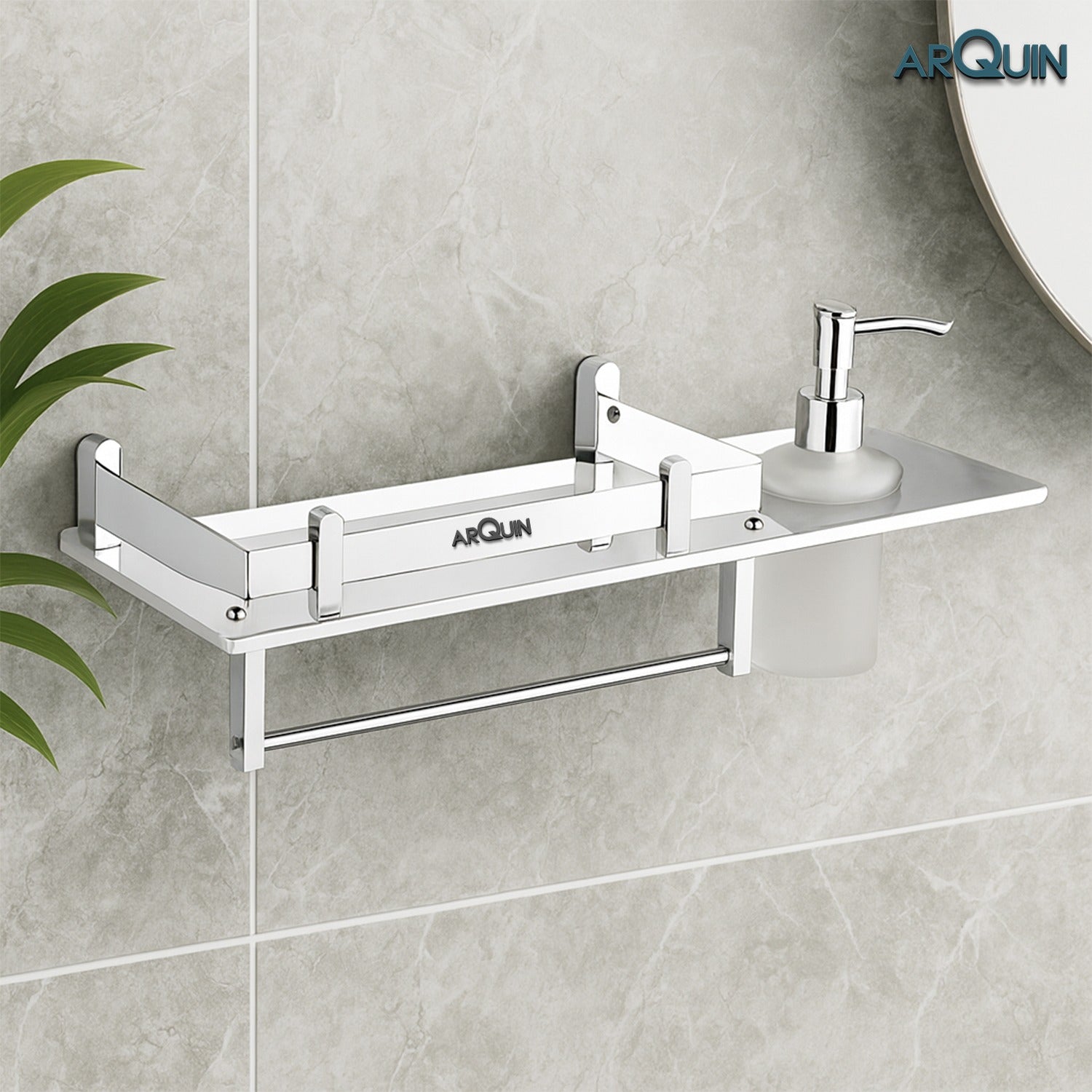 The ARQUIN Bathroom Wall Mount Shelf is expertly crafted from premium-quality SS Heavy Grade stainless steel and finished with a sleek, chrome coating that enhances both durability and visual appeal. Designed to resist scratches, rust, and corrosion, this Shelf is built to thrive in humid bathroom environments, ensuring long-lasting performance. Its heavy-grade structure offers ample space to neatly organize your toiletries, shampoos, perfumes, accessories, mobile phones, and other essentials—keeping your bathroom clean, tidy, and clutter-free. The space-saving design fits perfectly onto walls, making it ideal for compact bathrooms.