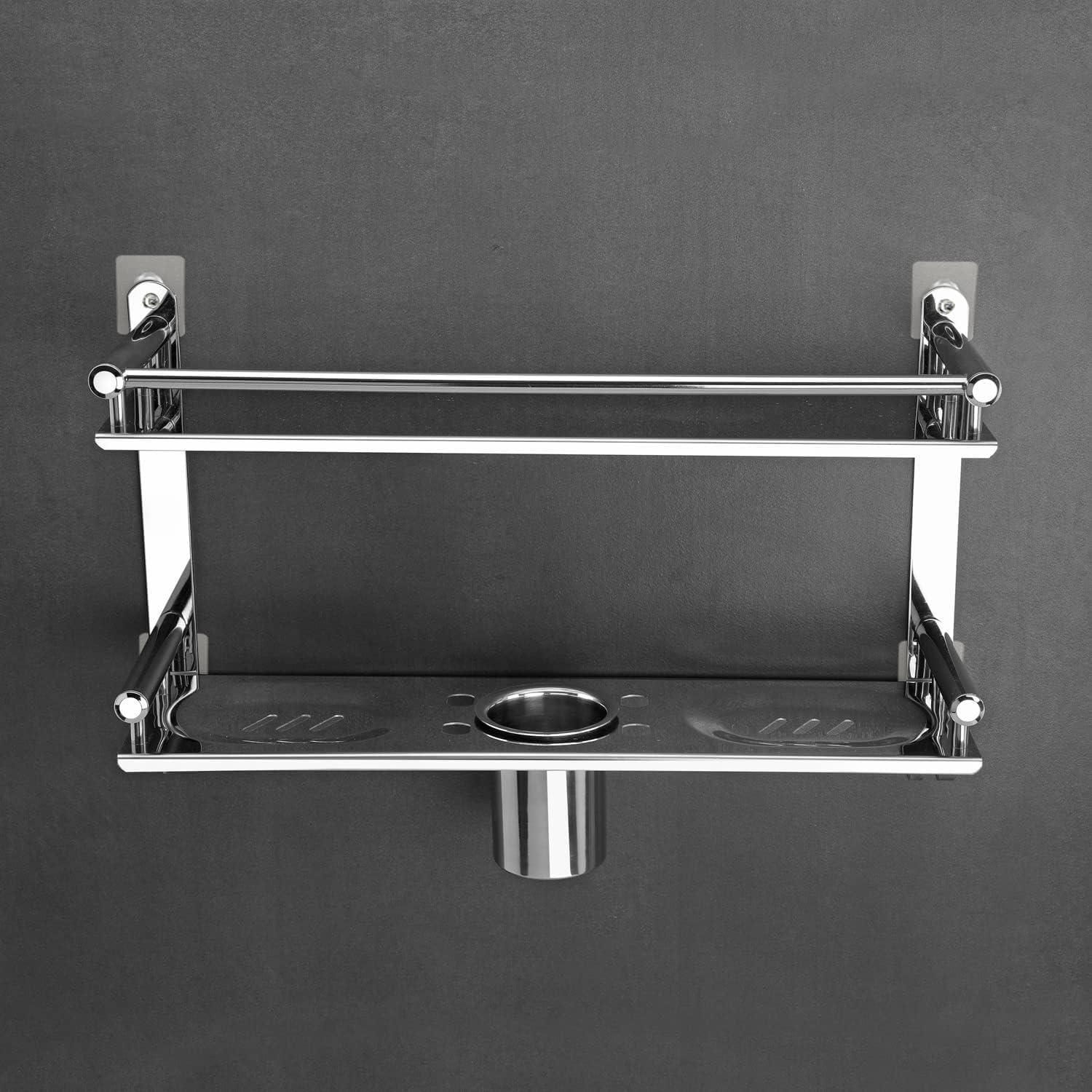 The ARQUIN Bathroom Wall Mount Shelf is expertly crafted from premium-quality SS Heavy Grade stainless steel and finished with a sleek, chrome coating that enhances both durability and visual appeal. Designed to resist scratches, rust, and corrosion, this Shelf is built to thrive in humid bathroom environments, ensuring long-lasting performance. Its heavy-grade structure offers ample space to neatly organize your toiletries, shampoos, perfumes, accessories, mobile phones, and other essentials—keeping your bathroom clean, tidy, and clutter-free. The space-saving design fits perfectly onto walls, making it ideal for compact bathrooms.