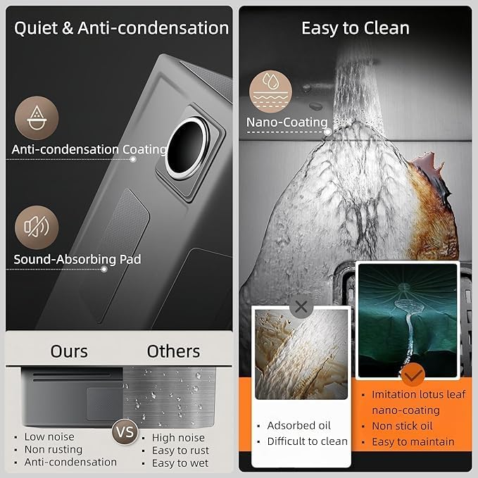 Stainless Steel Construction: The sink is made of high-quality stainless steel, known for its durability, corrosion resistance, and ability to withstand heavy use. The nano-black finish gives the sink a modern, sophisticated look while also protecting it from scratches and stains.