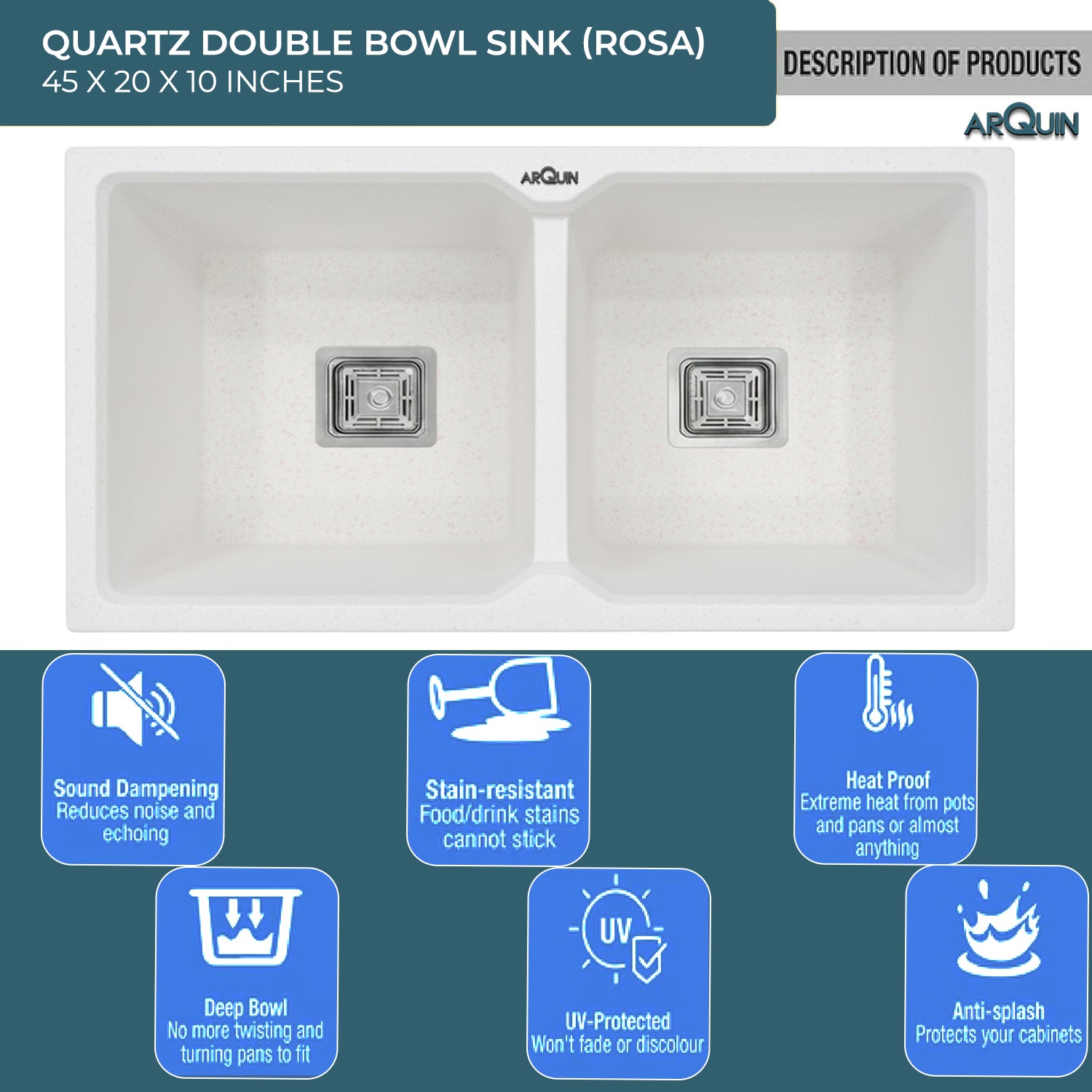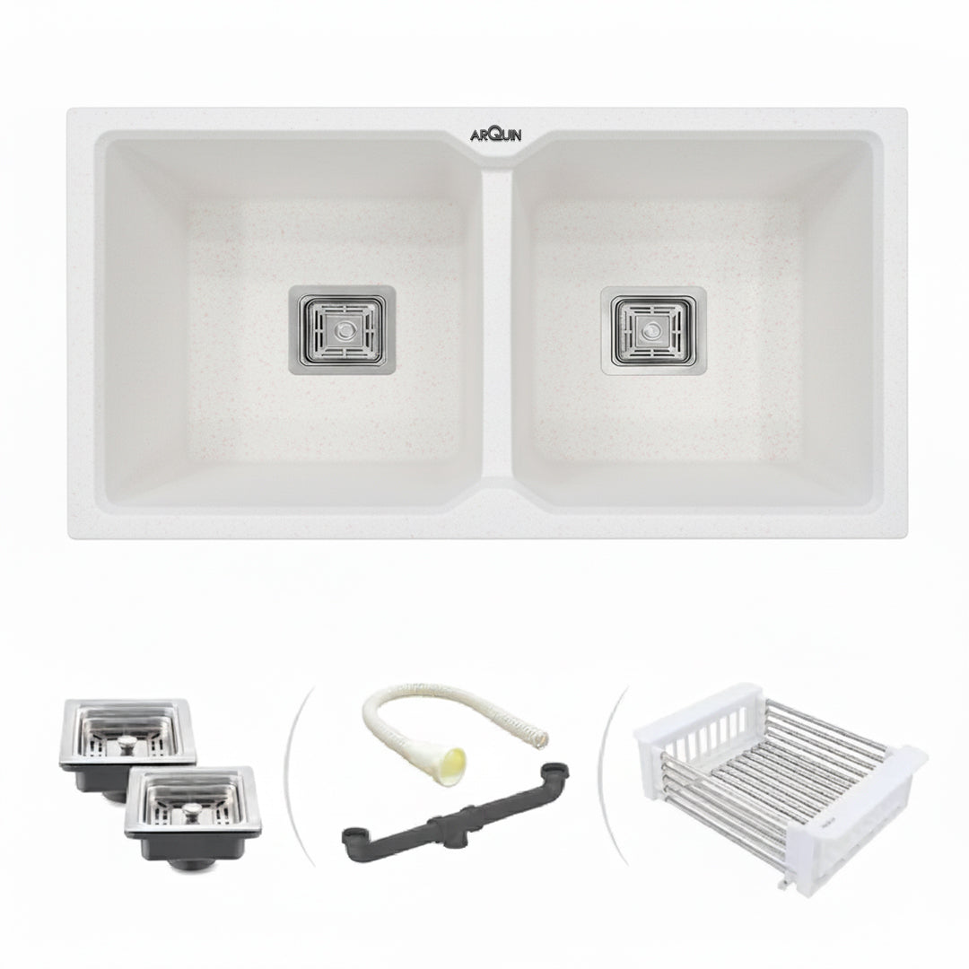 ARQUIN premium Quartz Granite Kitchen Sink, crafted with a perfect blend of style, strength, and functionality. Measuring inches with a solid 12mm thickness, this sink is designed to handle heavy-duty kitchen tasks with ease. Made from a high-quality quartz and granite composite, it offers exceptional resistance against scratches, stains, and heat, ensuring long-lasting performance.