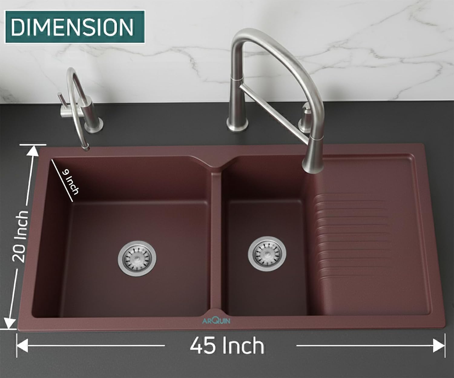ARQUIN premium Quartz Granite Kitchen Sink, crafted with a perfect blend of style, strength, and functionality. Measuring inches with a solid 12mm thickness, this sink is designed to handle heavy-duty kitchen tasks with ease. Made from a high-quality quartz and granite composite, it offers exceptional resistance against scratches, stains, and heat, ensuring long-lasting performance.