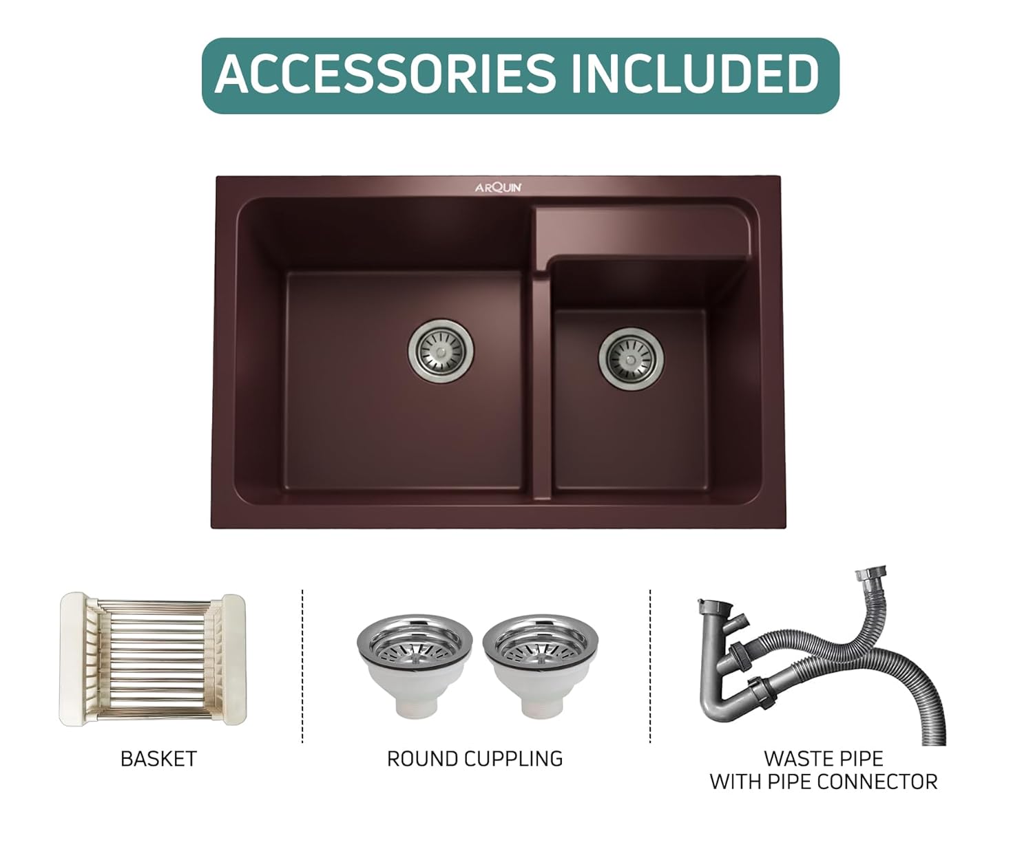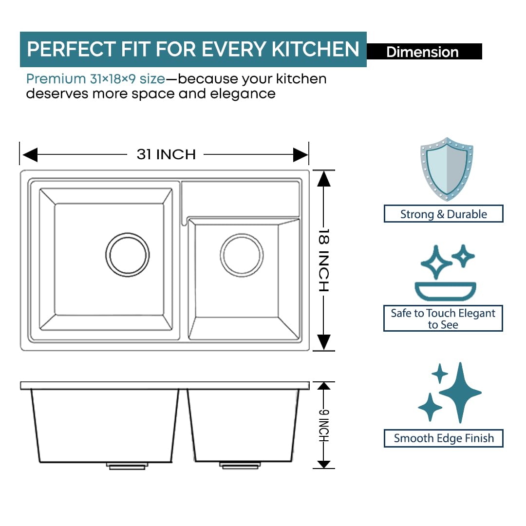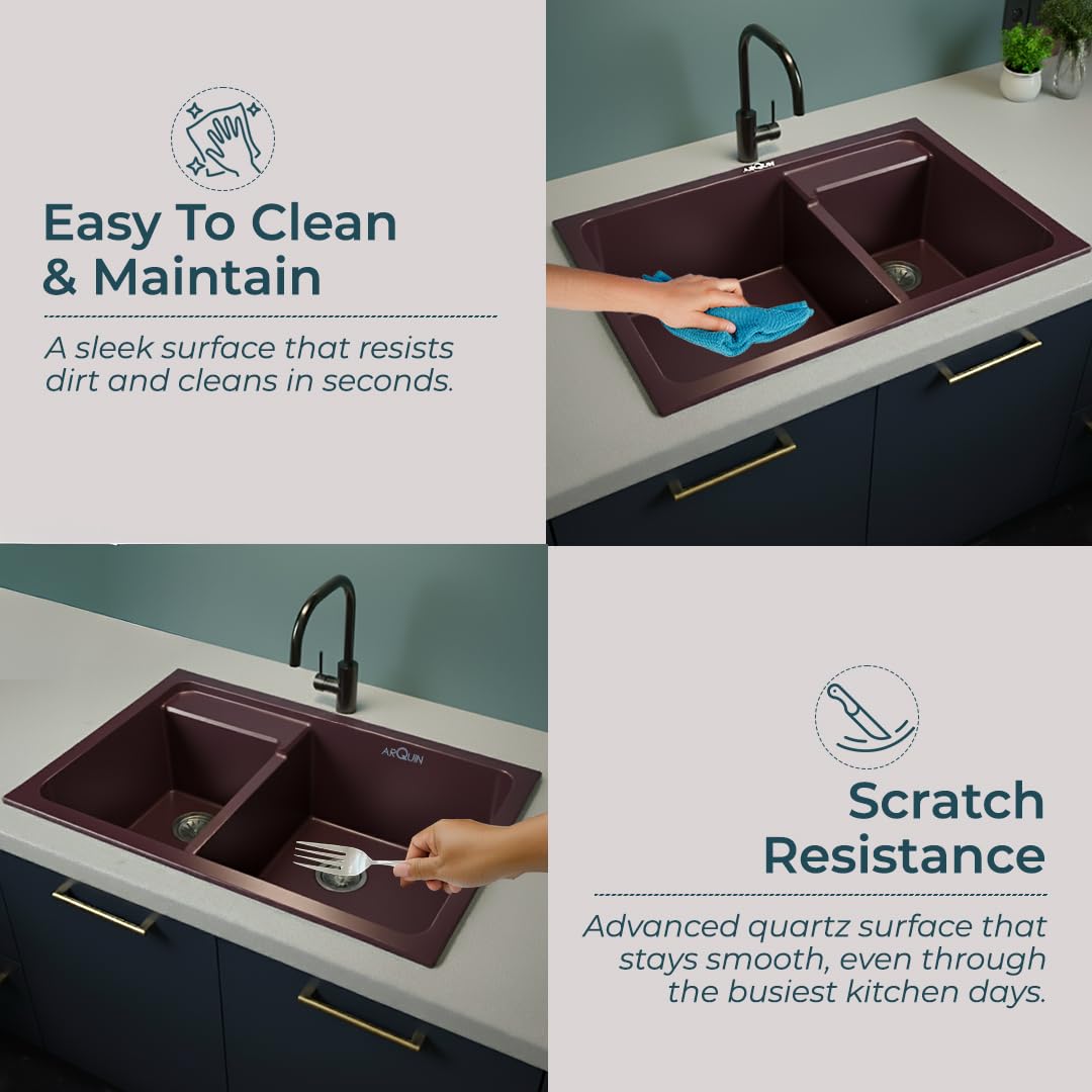 ARQUIN premium Quartz Granite Kitchen Sink, crafted with a perfect blend of style, strength, and functionality. Measuring inches with a solid 12mm thickness, this sink is designed to handle heavy-duty kitchen tasks with ease. Made from a high-quality quartz and granite composite, it offers exceptional resistance against scratches, stains, and heat, ensuring long-lasting performance.
