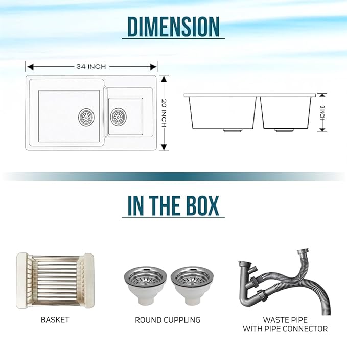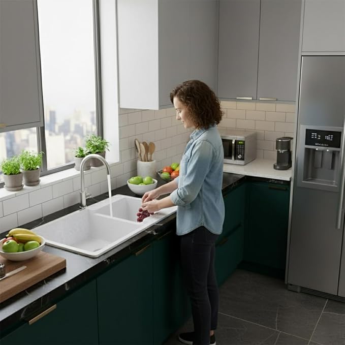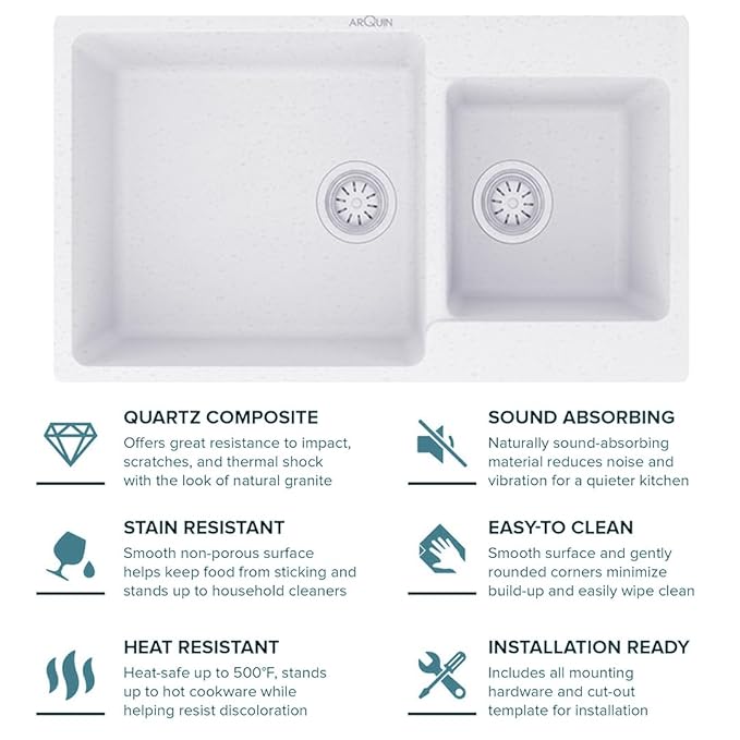 ARQUIN premium Quartz Granite Kitchen Sink, crafted with a perfect blend of style, strength, and functionality. Measuring inches with a solid 12mm thickness, this sink is designed to handle heavy-duty kitchen tasks with ease. Made from a high-quality quartz and granite composite, it offers exceptional resistance against scratches, stains, and heat, ensuring long-lasting performance.