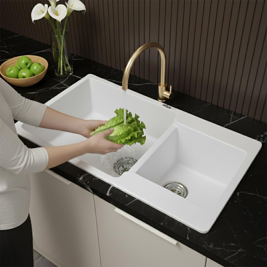 ARQUIN premium Quartz Granite Kitchen Sink, crafted with a perfect blend of style, strength, and functionality. Measuring inches with a solid 12mm thickness, this sink is designed to handle heavy-duty kitchen tasks with ease. Made from a high-quality quartz and granite composite, it offers exceptional resistance against scratches, stains, and heat, ensuring long-lasting performance.