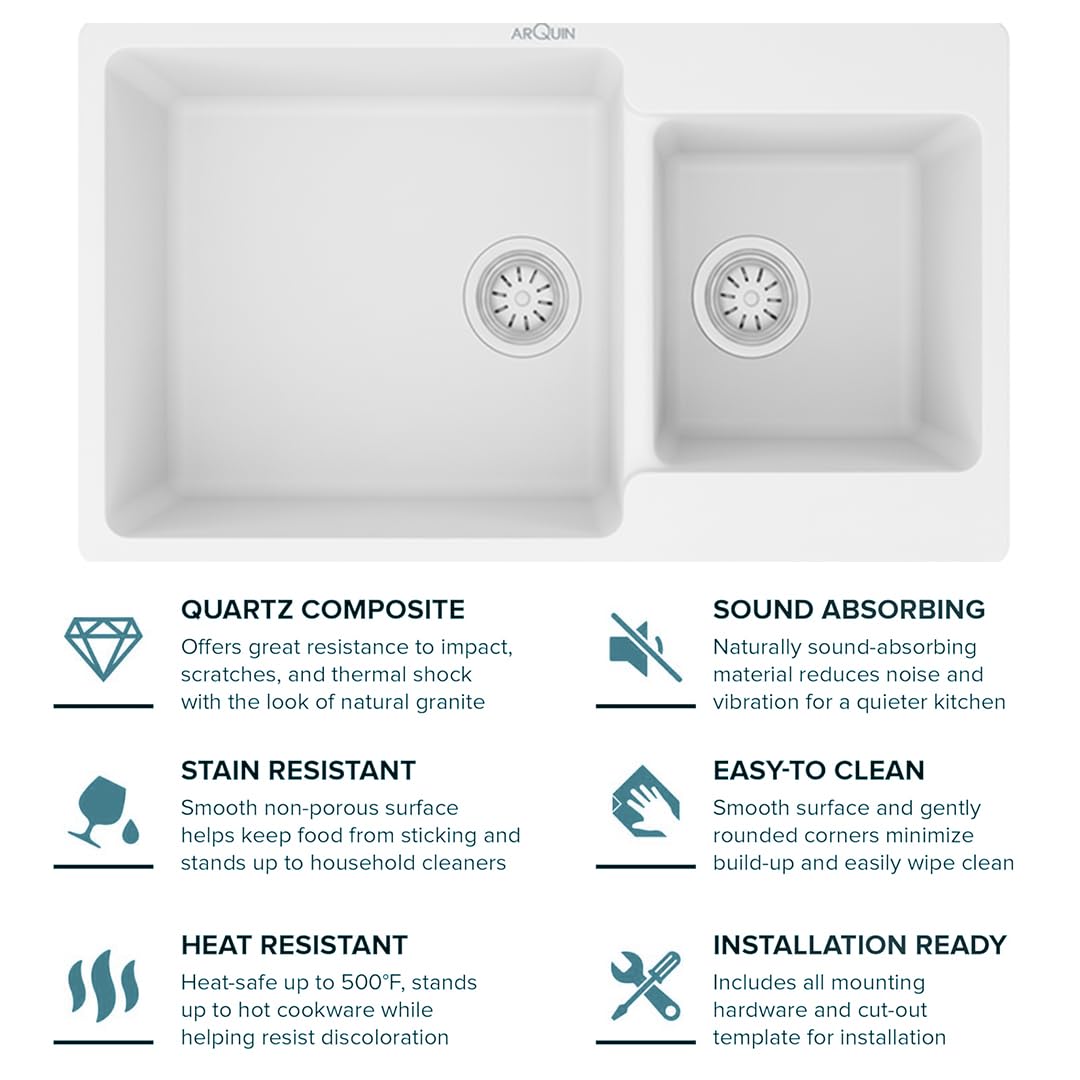 Quartz Kitchen Sink Double Bowl 34X20X9 Inch | White