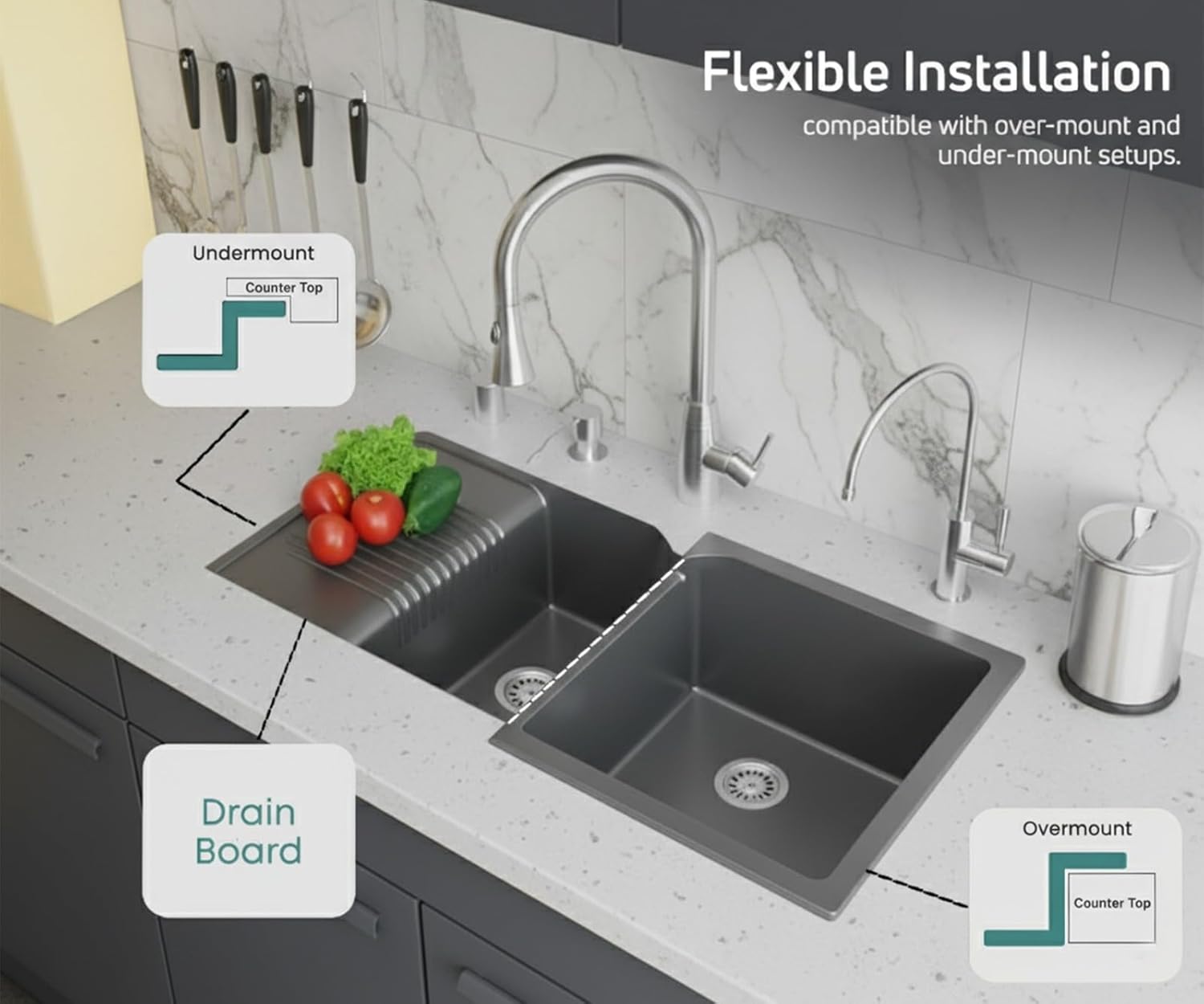 - 1 Dual Bowl Sink with drainboard