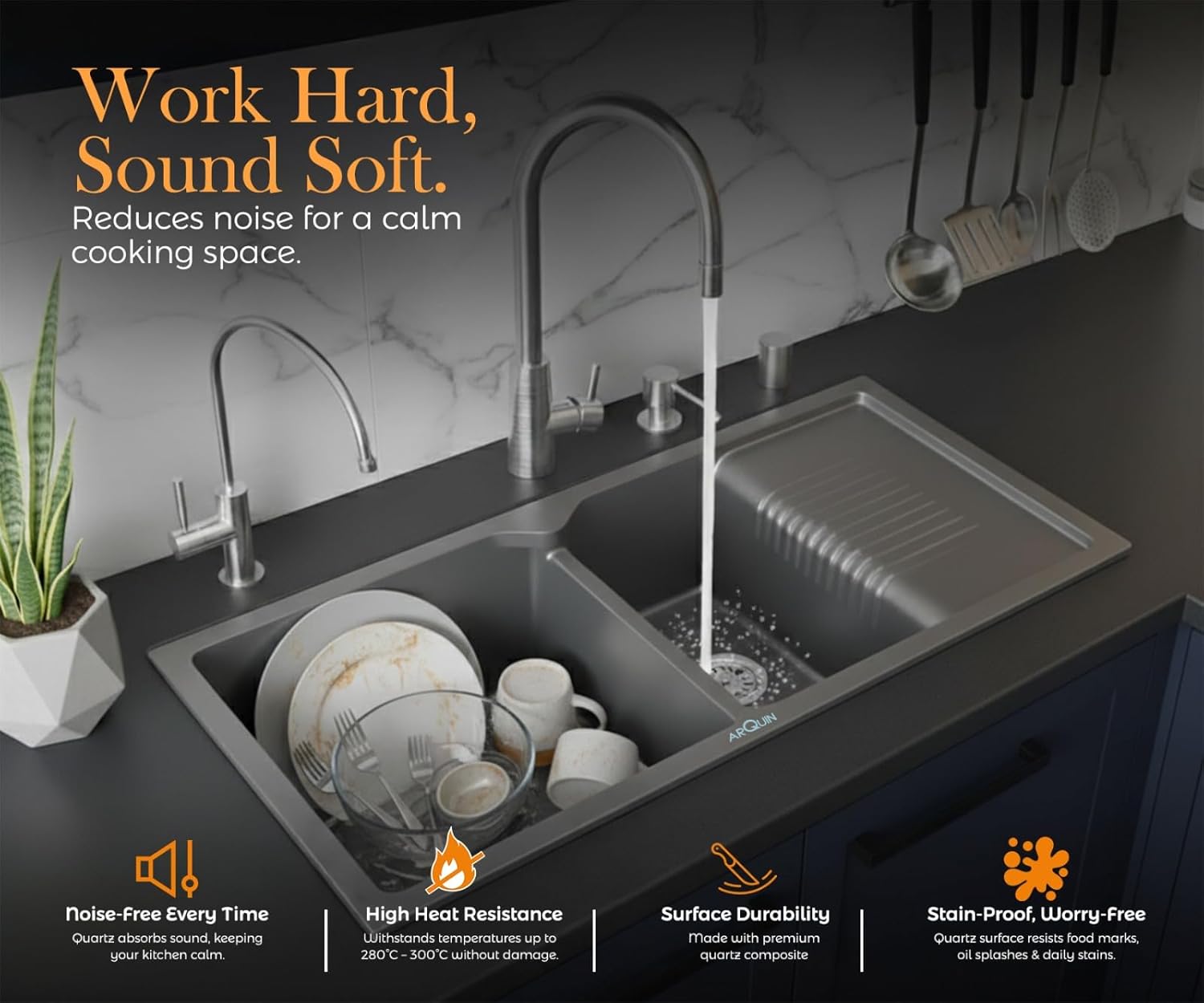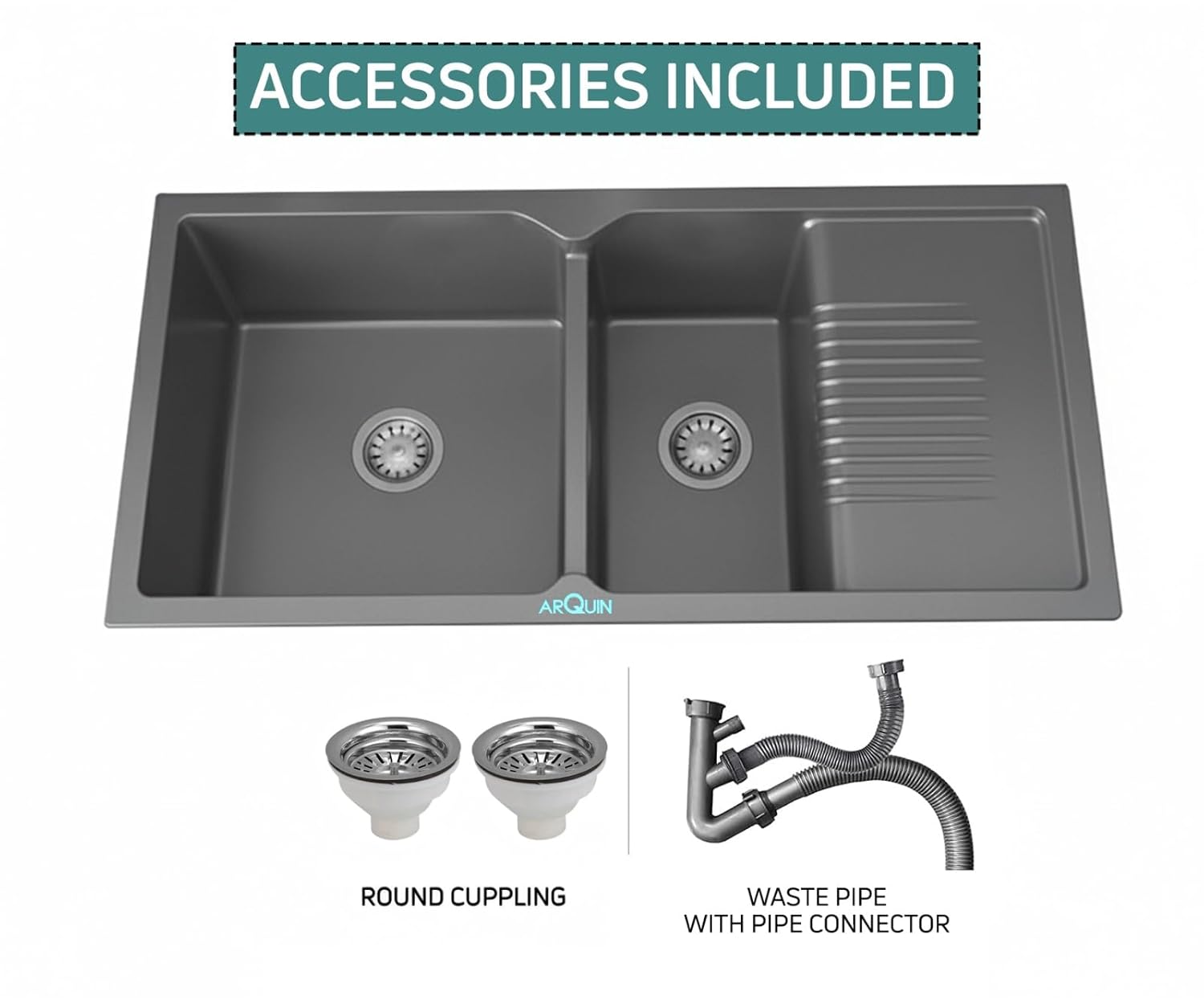 ARQUIN premium Quartz Granite Kitchen Sink, crafted with a perfect blend of style, strength, and functionality. Measuring inches with a solid 12mm thickness, this sink is designed to handle heavy-duty kitchen tasks with ease. Made from a high-quality quartz and granite composite, it offers exceptional resistance against scratches, stains, and heat, ensuring long-lasting performance.