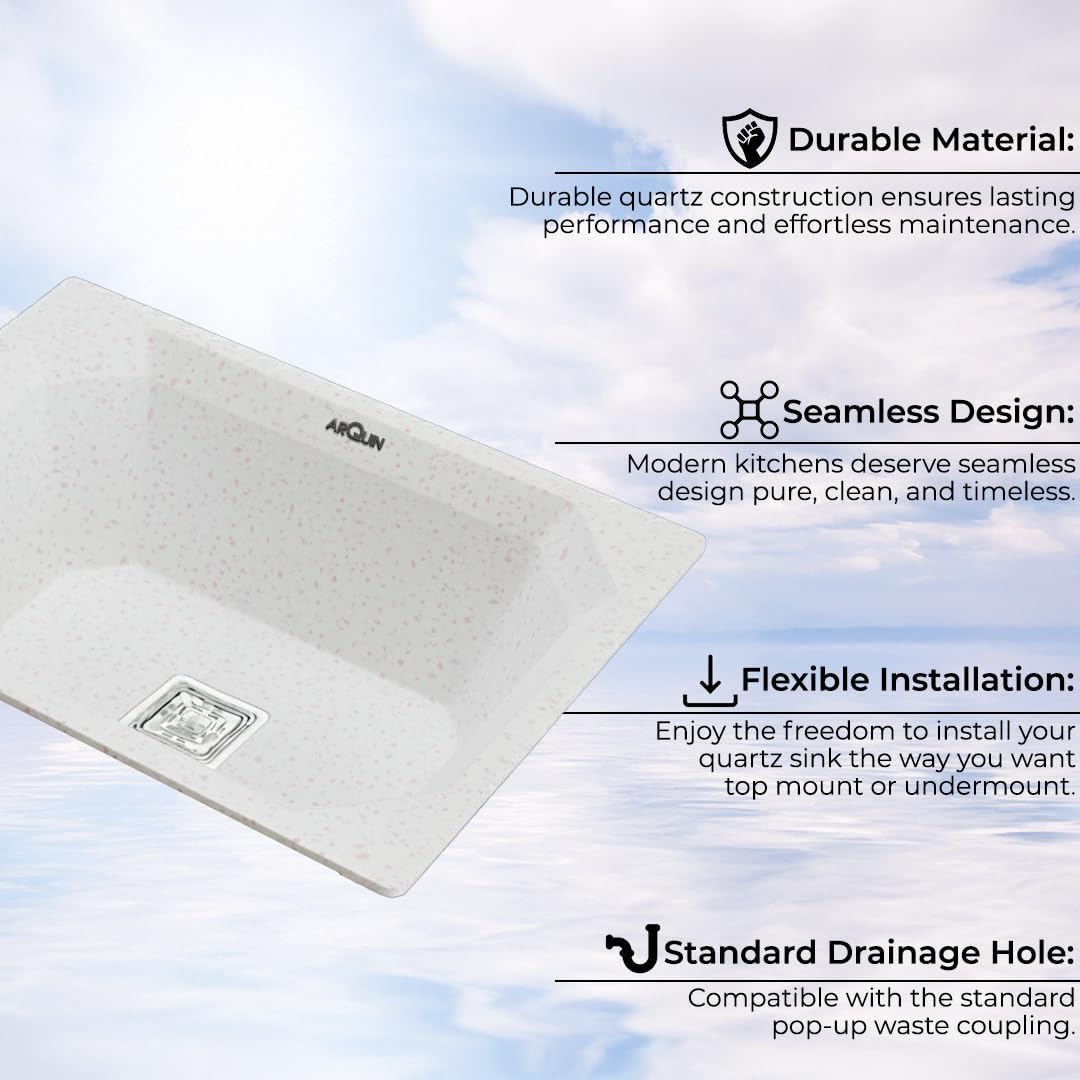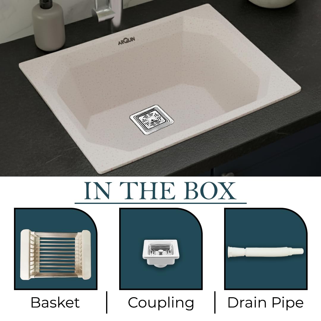 Components: 1 Quartz Kitchen Sink, Hose Pipe, Fruit Basket, and Square Coupling.