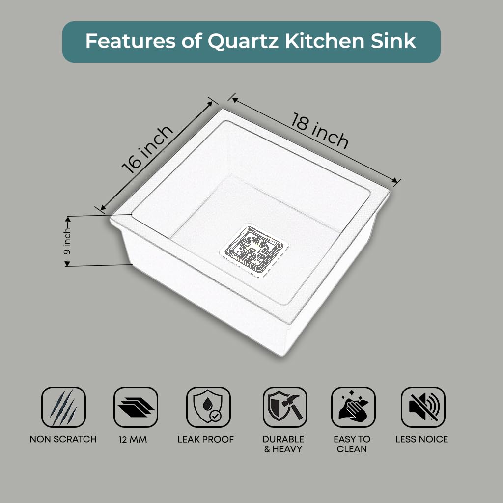 ARQUIN Quartz Kitchen Sinks are crafted from premium quartz granite, ensuring exceptional strength and durability. The surface offers superior scratch resistance and is finished with a refined white coating for a timeless, elegant appearance. Please note that the tone or shade of the quartz may vary slightly due to batch manufacturing and lighting conditions.