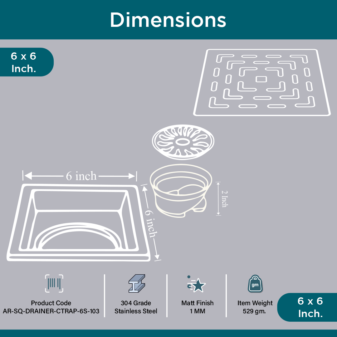 Product Description - The ARQUIN 304 Grade Stainless Steel Square Floor Drainer with Cockroach Trap (6x6 inch) is a high-quality, durable drainage solution designed to provide efficient water drainage while preventing unwanted pests. Made from premium 304-grade stainless steel, this floor drainer offers superior corrosion, rust, and wear resistance, ensuring it remains reliable and functional for years.
