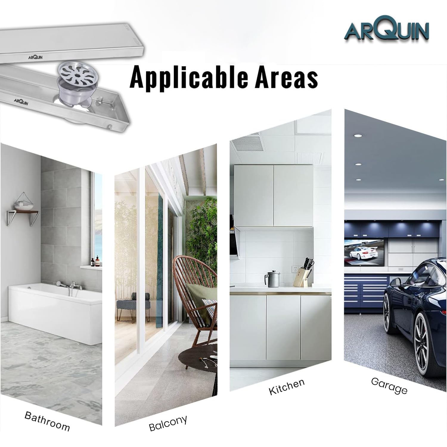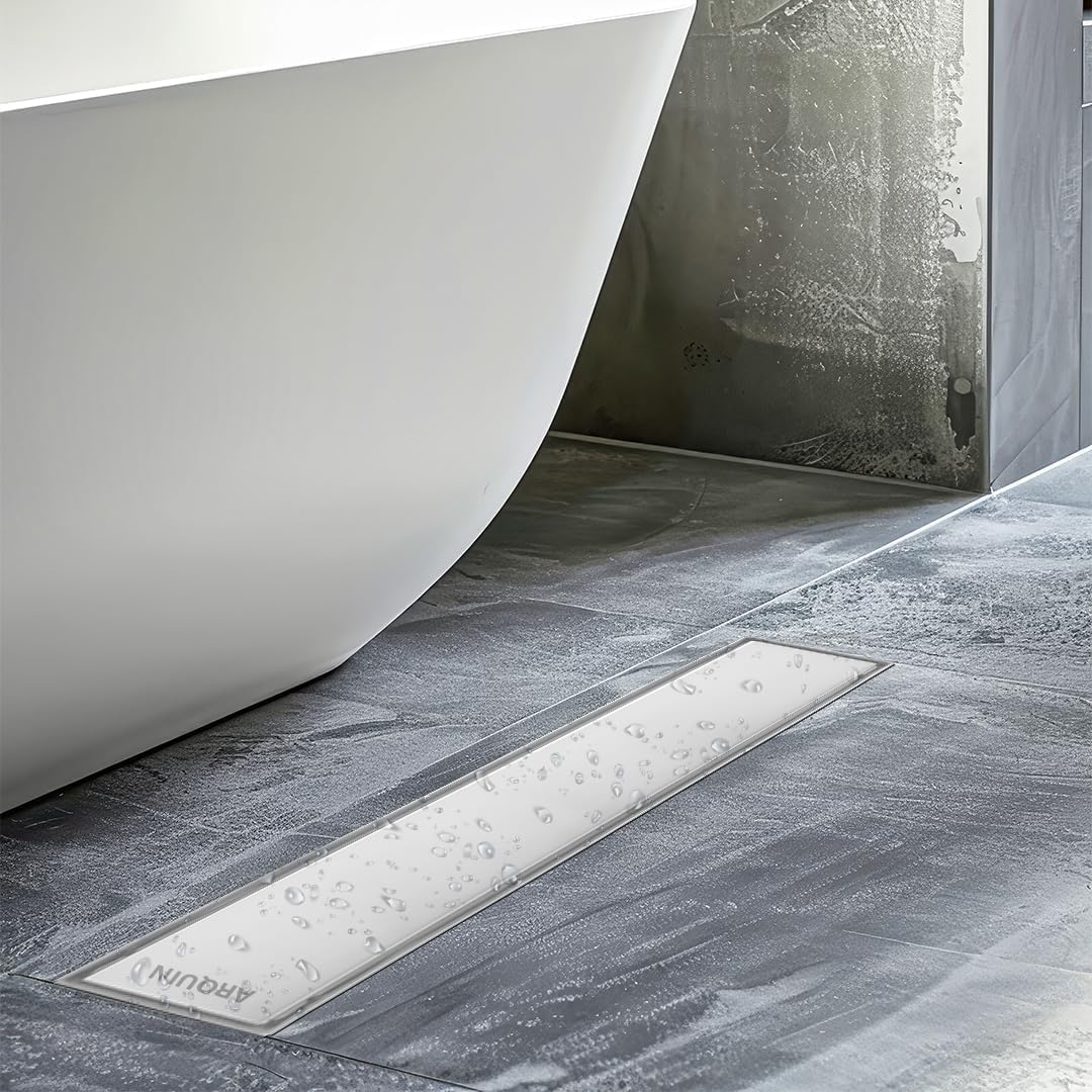 The ARQUIN 304 Grade Stainless Steel Shower Water Drain Channel is a premium drainage solution designed to ensure efficient water flow and enhance the overall aesthetics of your shower or bathroom. The Cockroach Trap helps in preventing blockage in pipes and foul smell and gases to enter the air space; Cockroach Jali barricades the entrance of pests from the drain; Drain Cover acts as the first line of defense to prevent waste from clogging the pipes; The tray enables quick drainage of water. Drain Channels are suitable for installation in rain showers, commercial kitchens & swimming pool areas.